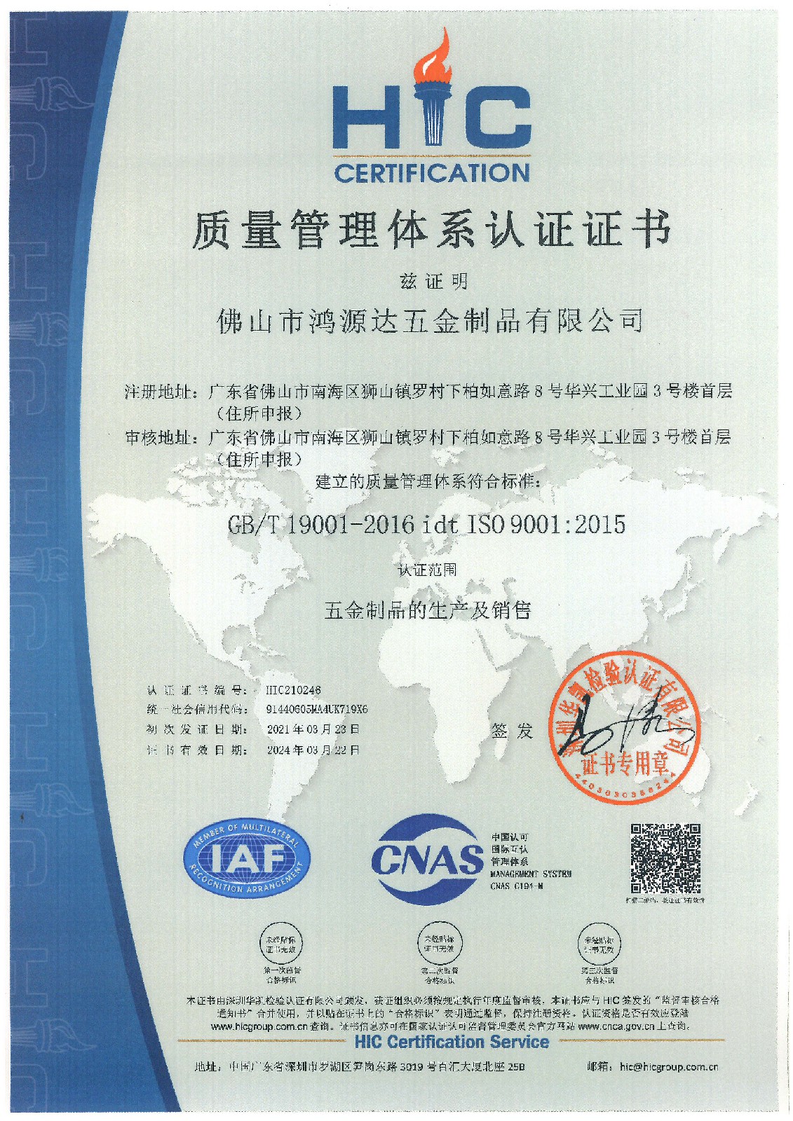佛山市鴻源達五金制品有限公司位于廣東省佛山市南海區(qū)獅山鎮(zhèn)羅村下柏如意路8號華興工業(yè)園3號樓。公司經過多年經驗的風雨洗禮,隨著時代不斷發(fā)展壯大,是一家專業(yè)生產、加工、銷售的五金制品企業(yè)。